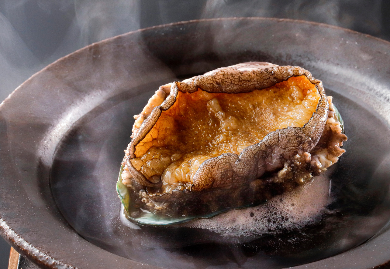 (varies depending on the plan): Sashimi, Steamed with Sake, or Grilled(A way to cook abalone that seems as if it's dancing).